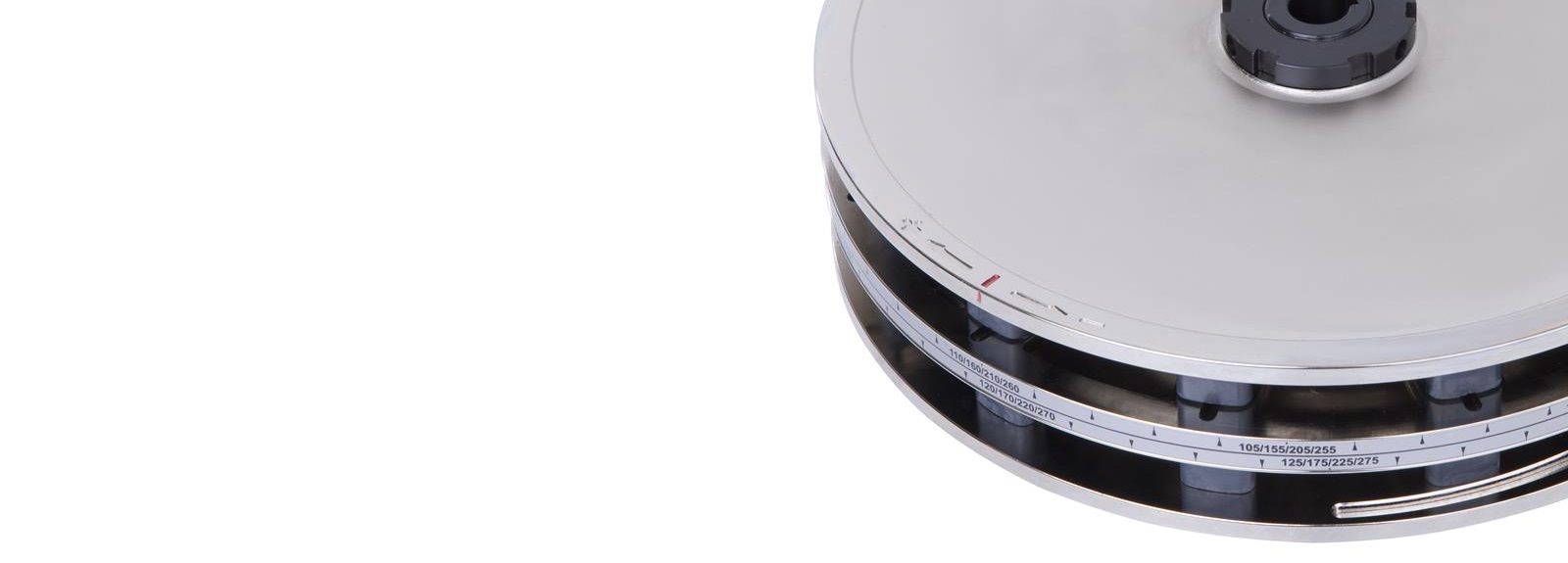 我们的调速盘是以铝合金铸造的,易于判读的刻度标示方便细微精准的调整。