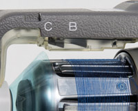 A-入纱传感器,B-储纱量传感器,C-纱速。通过这三组传感器,陡峰。