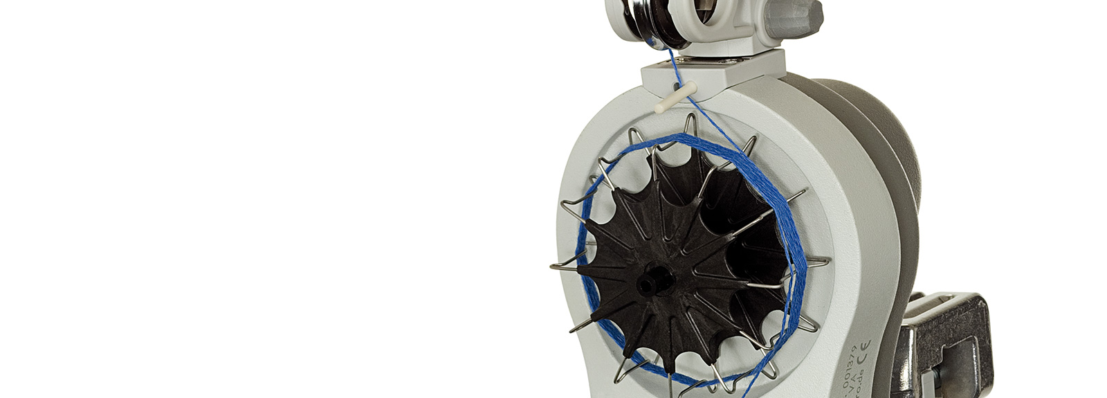 此储纱轮很轻但很坚固.用以理想搭配高动力应力传输的马达. 精确的卷取纱线确保卷取优化及防止过量卷取.