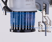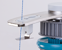 当使用长丝纤维纱时毛细单丝易缠绕于储纱轮上阻碍纱道的顺畅,避免此情况发生操作员可将出纱导杆选择在短纤纱的扁平出纱角度或长丝纤维纱的较陡峭出纱角度。
